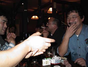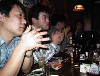 やっとの思いで見つけたこの居酒屋。コースならOKということなので、一番安いコースに飲み放題をつけて(当然ですね、この人たちいくら飲むかわかんないですもん)終電ギリギリまで.....